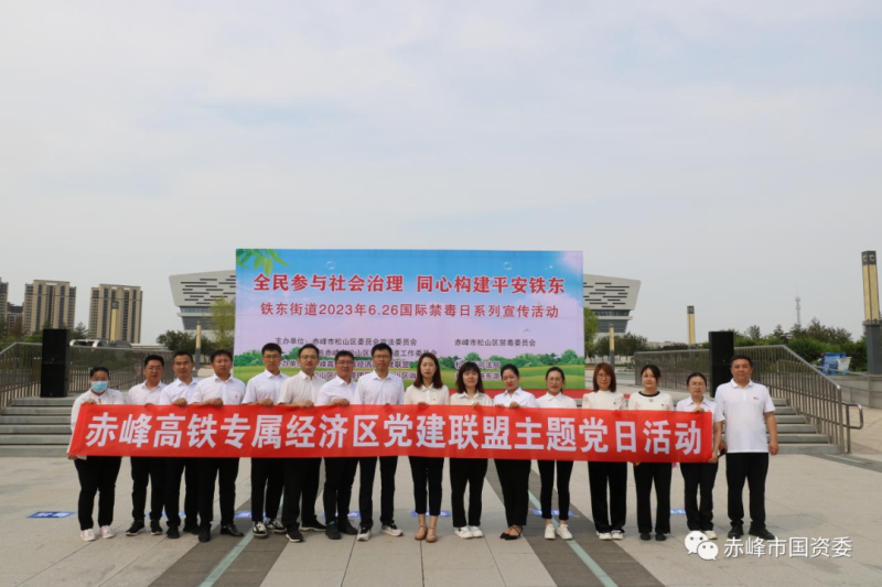 6月26日,赤峰市高鐵投資開發(fā)有限責(zé)任公司黨支部牽頭赤峰高鐵專屬經(jīng)濟(jì)區(qū)黨建聯(lián)盟各成員單位,參加了松山區(qū)鐵東街道舉辦的主題為“全民參與社會(huì)治理,同心構(gòu)建平安鐵東”第36個(gè)國際禁毒日系列宣傳活動(dòng)。