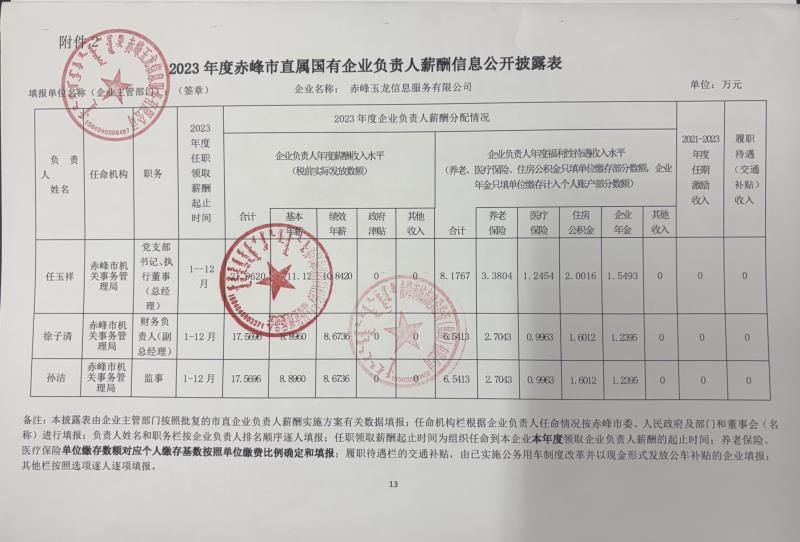 2023年度赤峰市直屬國有企業(yè)負責人薪酬(赤峰玉龍信息服務(wù)有限公司)
