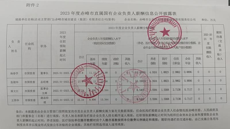 2023年度赤峰市直屬國有企業(yè)負責人薪酬(赤峰市公共住房開發(fā)建設投資有限責任公司)