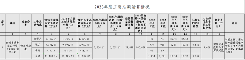 赤峰市城建集團2023年度工資總額清算結(jié)果