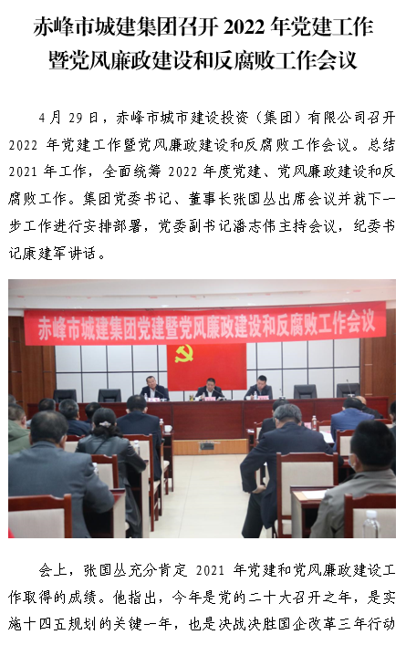 赤峰市城建集團召開2022年黨建工作 暨黨風(fēng)廉政建設(shè)和反腐敗工作會議