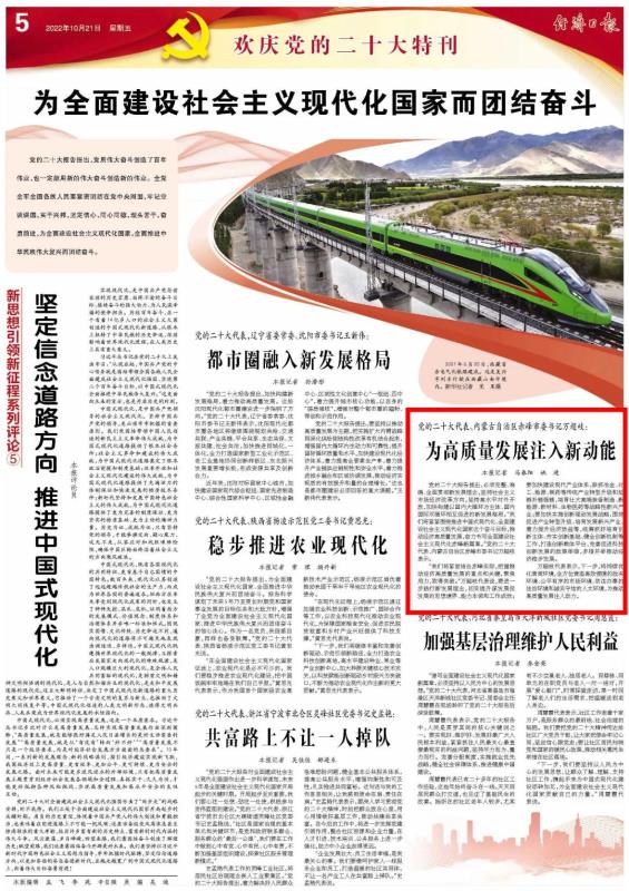 黨的二十大報(bào)告提出,必須完整、準(zhǔn)確、全面貫徹新發(fā)展理念,堅(jiān)持社會(huì)主義市場(chǎng)經(jīng)濟(jì)改革方向,堅(jiān)持高水平對(duì)外開(kāi)放,加快構(gòu)建以國(guó)內(nèi)大循環(huán)為主體、國(guó)內(nèi)國(guó)際雙循環(huán)相互促進(jìn)的新發(fā)展格局?!拔覀儗⒕o緊圍繞推進(jìn)中國(guó)式現(xiàn)代化、全面建設(shè)社會(huì)主義現(xiàn)代化國(guó)家這個(gè)奮斗目標(biāo),推動(dòng)經(jīng)濟(jì)高質(zhì)量發(fā)展,奮力書(shū)寫(xiě)全面建設(shè)社會(huì)主義現(xiàn)代化赤峰新篇章?!秉h的二十大代表、內(nèi)蒙古自治區(qū)赤峰市委書(shū)記萬(wàn)超岐表示。