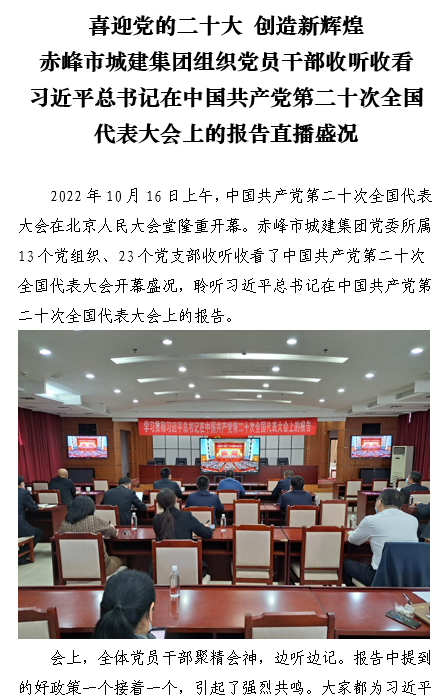 喜迎黨的二十大 創(chuàng)造新輝煌 赤峰市城建集團(tuán)組織黨員干部收聽收看 習(xí)近平總書記在中國共產(chǎn)黨第二十次全國代表大會上的報告直播盛況